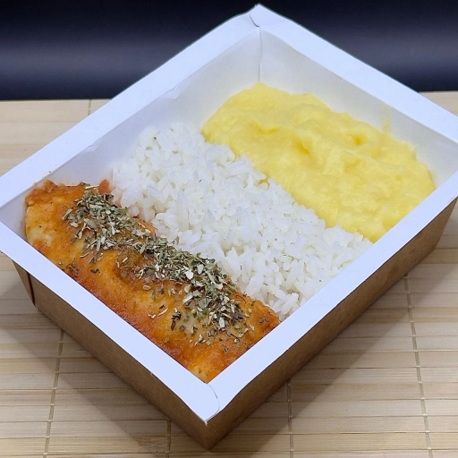 250g - Filé de tilápia grelhado (50g) + 2 Acompanhamentos a escolher (200g)