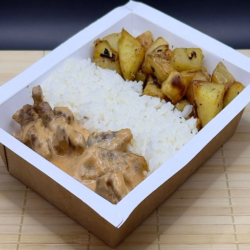 300g - Strogonoff de alcatra (100g) + 2 Acompanhamentos a escolher (200g)