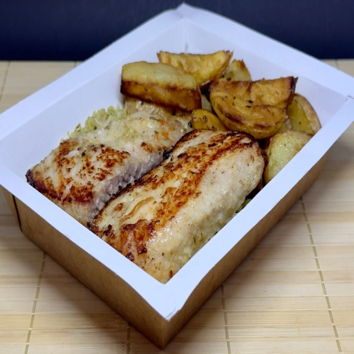 275g - Filé de frango grelhado (50g), cebola (25g) + 2 Acompanhamentos a escolher (200g)